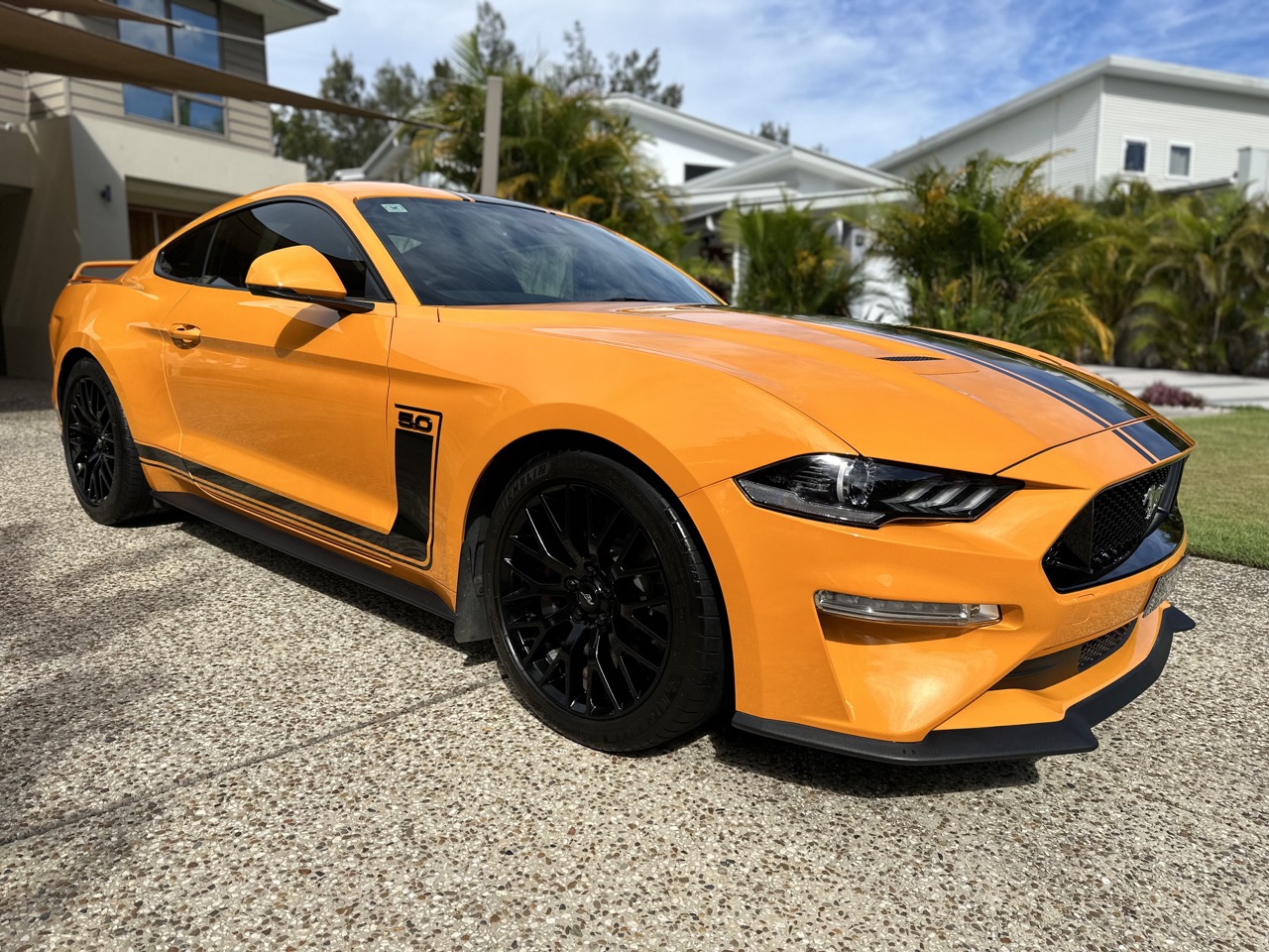 Finished in Orange Fury with Ford Performance “R Type” Black 3 Piece Racing Stripes and fully Ceramic Coated for lifelong paint protection. This neat Mustang features a host of add ons from the factory, including the very expensive and rare Recaro Leather Seat option. Rear One Piece Spoiler, Magnetic Ride Suspension and Bi Model Exhaust.